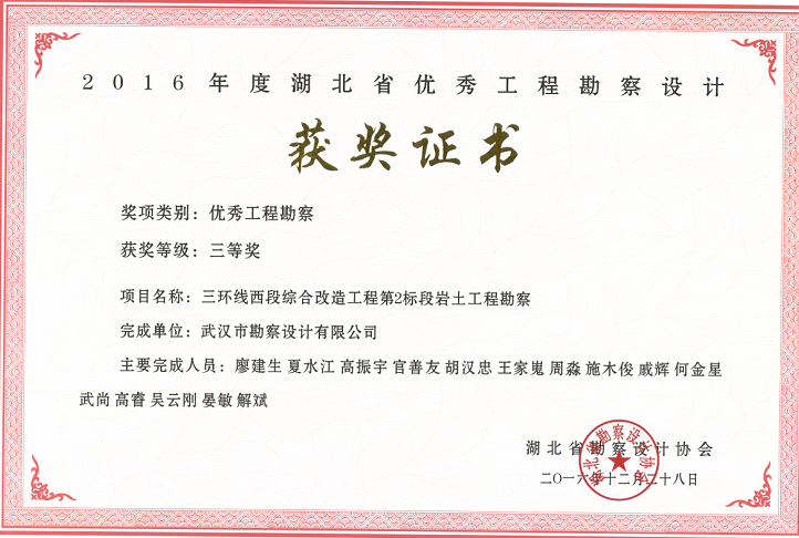 湖北省優(yōu)秀勘察三等獎