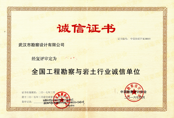 武漢市姑嫂樹路(二環(huán)線至三環(huán)線)巖土工程勘察獲2016年度湖北省