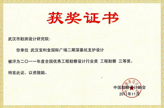 融僑錦江項目巖土工程勘察項目獲2014年度湖北省優(yōu)秀工程勘察三等