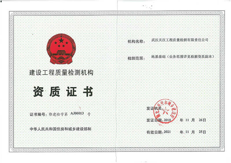 建設(shè)工程質(zhì)量檢測(cè)機(jī)構(gòu)資質(zhì)證書(shū)