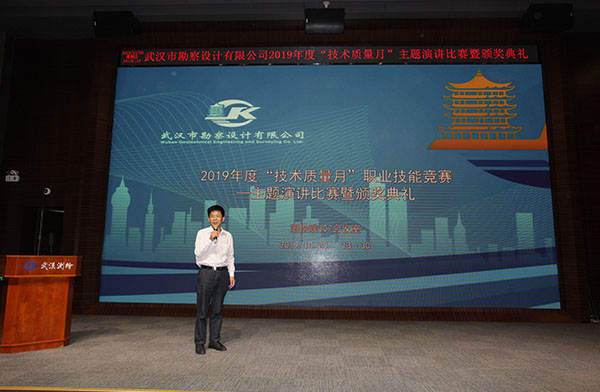 本屆競賽是一場跨專業(yè)、多工種的綜合性技能競賽,公司共有147名生產(chǎn)部門的專業(yè)技術人員參加了比賽,比賽分兩個階段,第一階段為職業(yè)技能競賽,分別設巖土工程(含設計、檢測、地質(zhì)環(huán)境)、基礎施工、測繪工程(含監(jiān)測)、土工試驗、不動產(chǎn)咨詢5類競賽項目,主要以專業(yè)技術知識考試為主,其中測繪工程和土工試驗兩個專業(yè)還進行了實操比賽,第二階段為主題演講比賽。