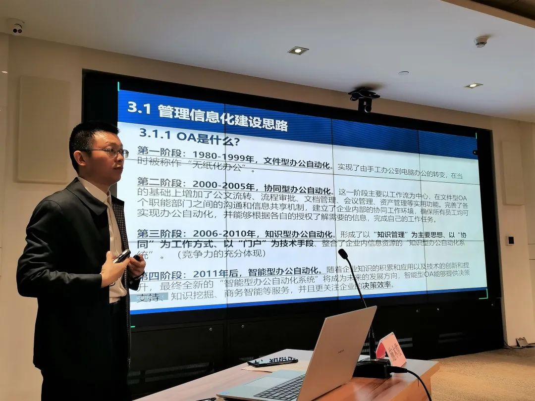 授課進(jìn)入尾聲時(shí),施木俊重點(diǎn)推介了公司在行業(yè)發(fā)展,企業(yè)管理上的優(yōu)勢(shì):在勘測(cè)與巖土工程專業(yè)領(lǐng)域,武勘公司能為工程建設(shè)項(xiàng)目的策劃階段提供最優(yōu)解,能精準(zhǔn)把控工程全過程風(fēng)險(xiǎn),實(shí)現(xiàn)項(xiàng)目風(fēng)險(xiǎn)、經(jīng)濟(jì)與時(shí)間相平衡;已積累的分布在武漢各地?cái)?shù)十萬的鉆孔資料和已建設(shè)的數(shù)據(jù)管理平臺(tái),為項(xiàng)目開發(fā)初期高效準(zhǔn)確進(jìn)行成本、工期預(yù)估提供了重要基礎(chǔ)資源;現(xiàn)有的智慧監(jiān)測(cè)平臺(tái)及自動(dòng)運(yùn)行的測(cè)量機(jī)器人讓項(xiàng)目建設(shè)與運(yùn)行維護(hù)一切盡在掌握;管理信息化更是成為了打破深井,為企業(yè)發(fā)展賦能的重要手段。