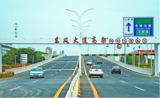 9月20日下午2點(diǎn),東風(fēng)大道高架二期向社會車輛開放,至此,東風(fēng)大道高架全線通車。