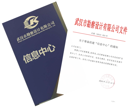2017年1月1日,武漢市勘察設(shè)計有限公司正式下文成立信息中心,主要負責公司科研開發(fā)、信息化建設(shè)、軟件系統(tǒng)及資源平臺維護等工作。
