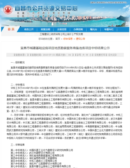 2018年7月13日,我公司以優(yōu)良的信譽(yù)、合適的報(bào)價(jià),從14家勘察單位中脫穎而出,成功入選宜昌市城建基礎(chǔ)設(shè)施項(xiàng)目地質(zhì)勘察服務(wù)商備選庫,本次服務(wù)商備選庫擇優(yōu)選取前七名候選人,服務(wù)期三年。招標(biāo)人為宜昌市住房和城鄉(xiāng)建設(shè)委員會(huì)。服務(wù)工作范圍主要為宜昌市城建...